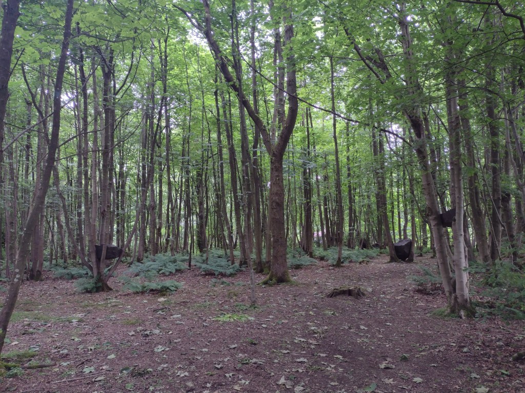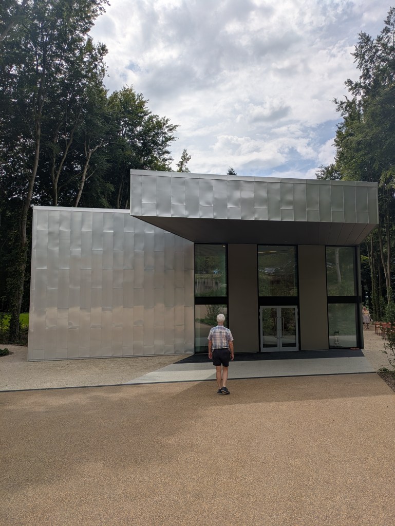 When we came upon Susan Phillipsz’ work As Many As Will (2015), it took a few moments of listening to the silence (actually the birds and the wind in the trees) before being startled by a lone signing voice, soon joined by others. This beautiful ‘in the round’ song, which Phillipsz sings herself with her soft Scottish accent, about refuge and Robin Hood moved me, but I couldn’t quite say why I had tears in my eyes and a strange catch in my throat. Something about feeling lucky and sad at the same time. How did I get to stroll through this beautiful landscape, stumbling upon art, when there is so much horror unfolding before our very eyes on our phones from morning ‘til night. Why is the world like this.